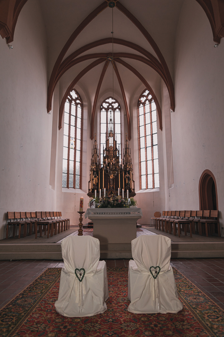 Kirchliche Trauung in der Klosterkirche Münchaurach mit anschließender Feier im Akanthus Hotel in Weissendorf